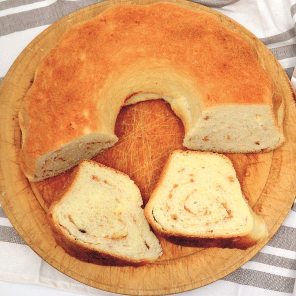 Vzhajano testo stresemo na pult, ga pregnetemo in pustimo počivati nekaj minut. Spočito testo razvaljamo na pravokotnik. Premažemo ga z ocvrtimi ocvirki (brez masti), posolimo, če so ocvirki manj slani, in zvijemo v zavitek. Položimo ga v namaščen model in damo ponovno na toplo vzhajati.