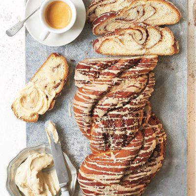 Babka z začimbnim nadevom in tahinijevo maslo z medom