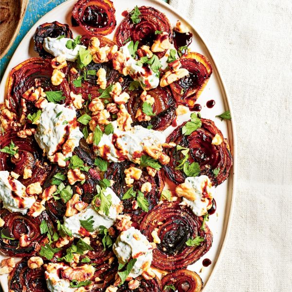 Ožgana čebula z balzamičnim kisom, orehi in rikoto