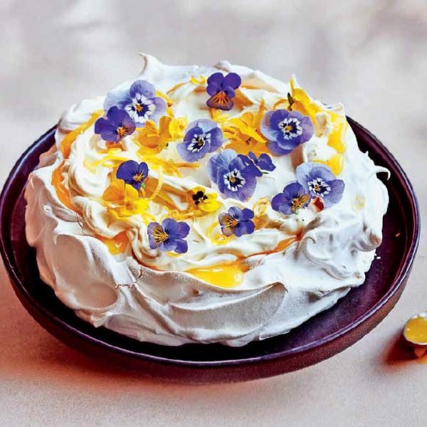 V sredino pavlove naložimo 200 g limonove kreme. Z električnim mešalnikom stepemo smetano s preostalo limonovo kremo, sladkorjem v prahu in naribano limonovo lupinico, da nastanejo mehki vršički. Stepeno smetano naložimo na limonovo kremo in jo razmažemo do robov. Posujemo jo s trakci limonove lupinice in po želji okrasimo z užitnimi cvetlicami.