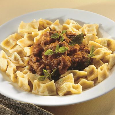 Krepka in aromatična pašta, ki jo povzdignejo olivna pasta tapenada, slani sardoni in čili.