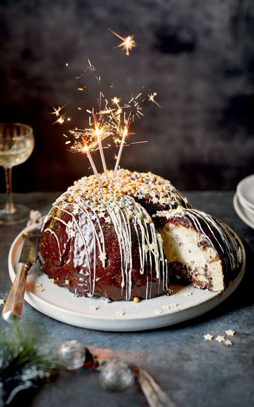 Sladico zvrnemo iz modla na servirni krožnik in odluščimo folijo. Okrasimo s stepeno smetano in kandiranimi češnjami. Počakamo 10 minut, nato sladico z nazobčanim nožem narežemo na rezine.