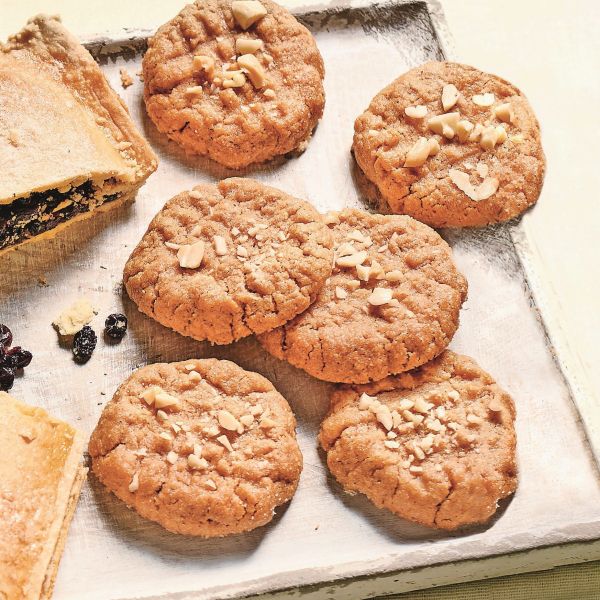 S hrbtno stranjo vilic na vsak piškot dvakrat pritisnemo, da dobimo križkraž vzorec in so piškoti ploski ter okrogli. Po želji jih posujemo z nasekljanimi oreški. Pečemo jih 10 do 12 minut, da se zlato rjavo obarvajo. Pustimo, da se 10 minut ohlajajo na pekačih, nato jih prestavimo na kuhinjsko mrežico, kjer naj se do konca ohladijo. V nepredušno zaprti posodi se obdržijo do 2 dni.