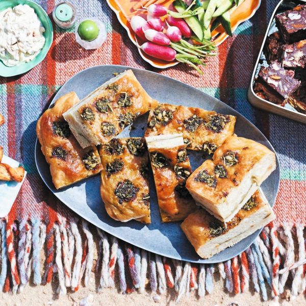 Pečeno pogačo prenesemo na kuhinjsko mrežico in pustimo, da se popolnoma ohladi. Na piknik odnesemo celo ali pa jo narežemo na 10 do 12 kosov.