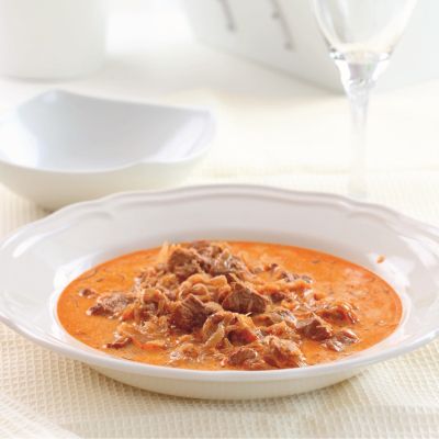 Segedin lahko postrežemo s kuhanim krompirjem v kosih, krompirjevim pirejem ali preprosto – s kosom dobrega kruha.