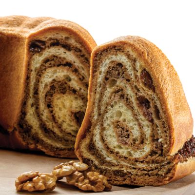 Najprej zamesimo testo. Mleko vlijemo v kozico, dodamo maslo in počasi segrevamo, da se maslo stopi in tekočina blago zavre. Odstavimo in nekaj minut počakamo, da se ohladi, nato z vilicami vtepemo jajci. V večji skledi zmešamo suhe sestavine, prilijemo tekoče sestavine in zmešamo v lepljivo testo. Počakamo 5 minut, nato ga stresemo na pomokano delovno površino. Gnetemo ga 5 do 10 minut, da postane gladko in prožno. Z malce olja premažemo veliko skledo, v katero položimo testo, ga obračamo, da ga po vsej površini naoljimo, nato skledo pokrijemo s prozorno kuhinjsko folijo. Na toplem jo pustimo eno uro oziroma dokler se prostornina testa ne podvoji. Nato testo pregnetemo s kavljastim nastavkom za testo.