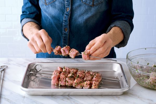 Žar pripravimo za močno direktno vročino (230 do 290 °C). Kocke mesa nataknemo na nabodala, pri čemer med kockami pustimo malce prostora, da bo vročina med peko meso dosegla z vseh strani.