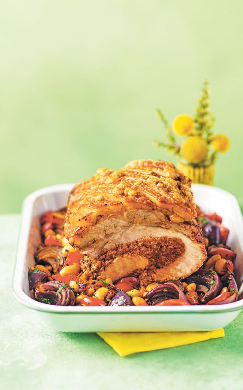 Svinjsko pleče splaknemo pod vodo in do suhega obrišemo. Kožo križno narežemo in natremo s soljo, poprom in kumino. Pečenko s kožno stranjo navzgor položimo v pekač in dodamo vodo. Čebulo olupimo in narežemo na četrtine. Prav tako olupimo česen in oboje dodamo pečenki. Pečemo v pečici pri 180 °C približno uro in pol, med pečenjem pečenko zalivamo s sokom od pečenja, nato jo obrnemo in pečemo še nadaljnje pol ure.