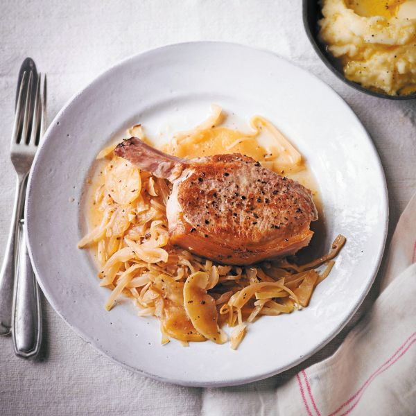 Čebulo na tanko narežemo in jo damo skupaj z mastjo od pečenke v kozico z debelim dnom, ki jo lahko uporabljamo tako na kuhalniku kot v pečici. Približno 5 minut pražimo čebulo na srednji temperaturi in jo ob tem večkrat premešamo.
