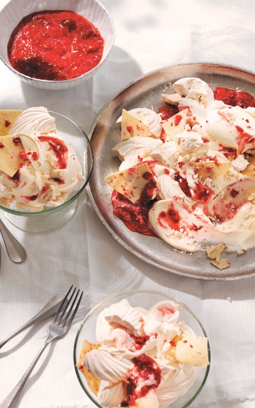 Rahlo stepemo sladko smetano, da dobimo mehke vršičke, in jo nežno vmešamo v ohlajeno angleško kremo. Mešanico preložimo v posodo za zamrzovanje in damo v zamrzovalnik za najmanj 6 ur.