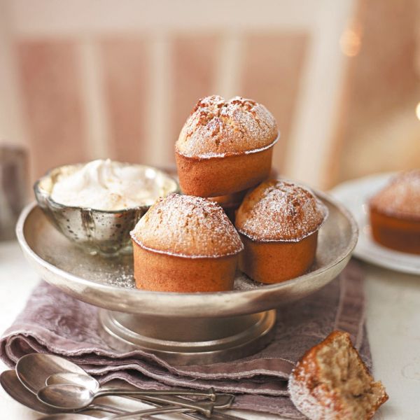Testo razdelimo v vdolbine modla in ga postavimo na velik plitev pekač. Pečemo 18 do 20 minut, da friandi narastejo, se zlato rjavo obarvajo in so prožni na dotik. Vzamemo jih iz pečice in pustimo, da se ohlajajo 5 minut, nato jih prestavimo na kuhinjsko mrežico. Jemo mlačne ali ohlajene, najbolje na dan, ko smo jih spekli. Posujemo jih s sladkorjem v prahu, zraven pa ponudimo kostanjevo kremo.