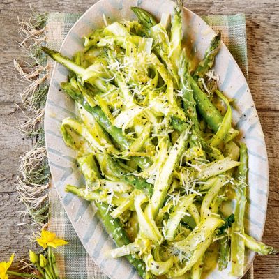 Surovi in kuhani šparglji z limono in parmezanovim maslom