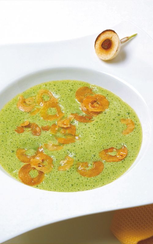 Blitvina kremna juha z ocvrtimi rezinicami česna