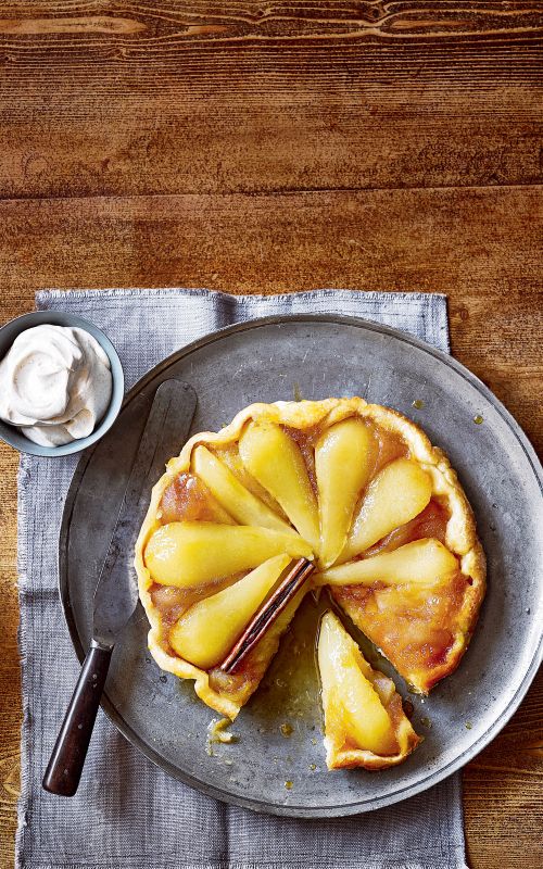 Obrnjena sadna pita z jabolčnikom in cimetovo smetano