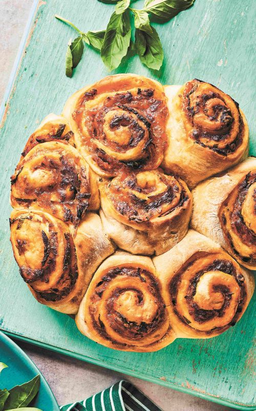 Klobasni zvitki s čebulno marmelado in timijanom