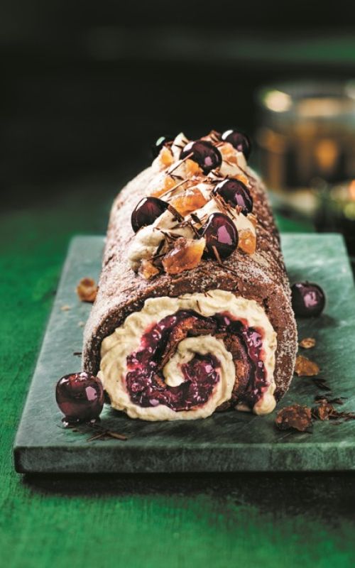 Čokoladna rulada s kostanjevo kremo in češnjami