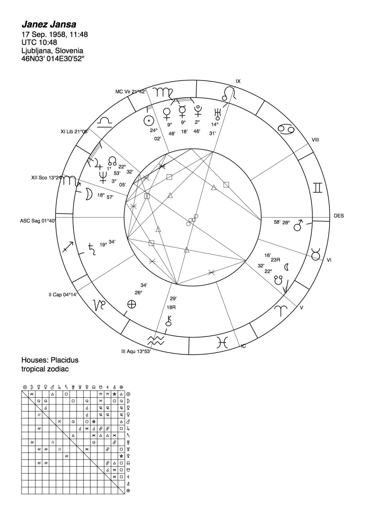 Kot devica po horoskopu in strelec v ascendentu je Janez Janša navidezno hladen, preračunljiv, zemeljski in praktičen, a v sebi nosi ogenj, ki v dobro zagori takrat, ko se počuti varnega, ali v reakciji takrat, ko se počuti ranljivega in napadenega.