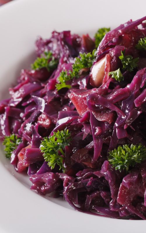 Dušeno rdeče zelje z brusnicami