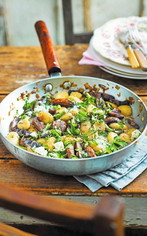 Njoki z gobami in modrim sirom