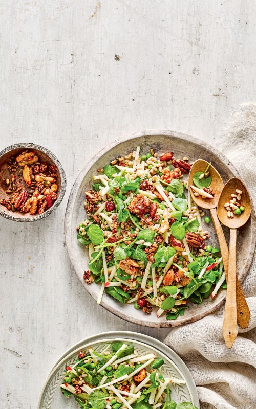 Pirina solata z jabolkom, hrustljavimi oreški in semeni