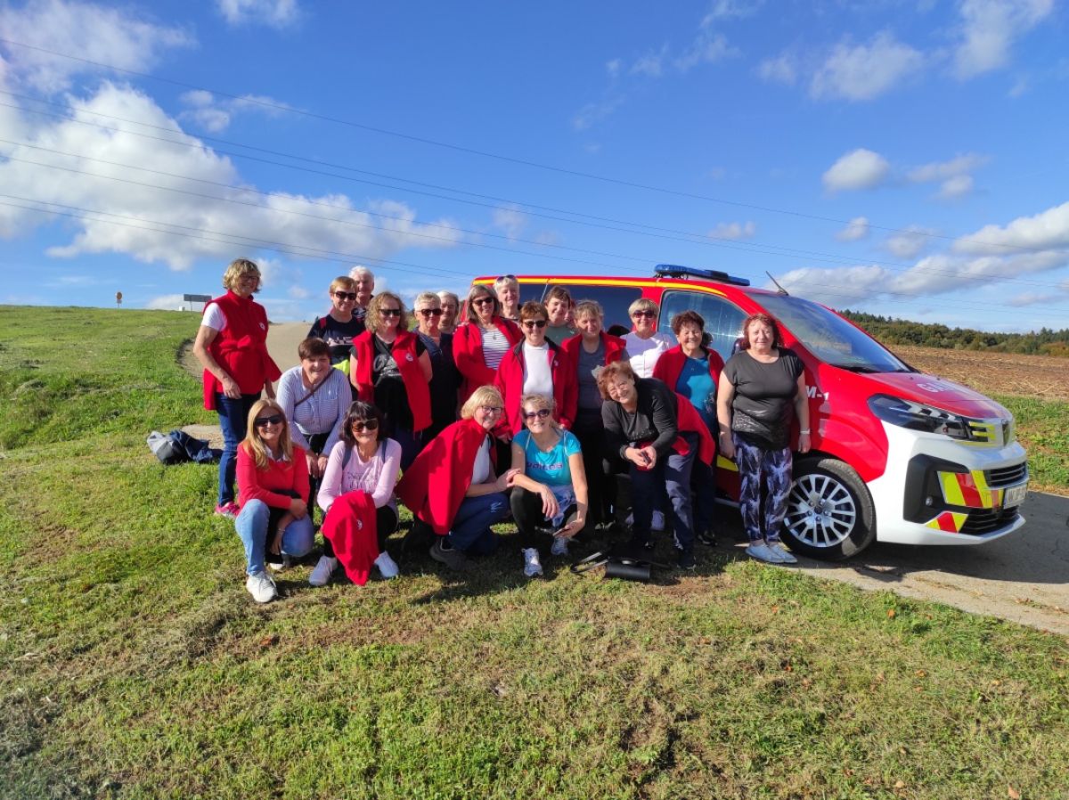 Za pomoč pri organizaciji pohoda so prečenske članice KORK hvaležne vaškim gasilcem, na Kuzarjevem Kalu pa so se postavile tudi pred objektiv.