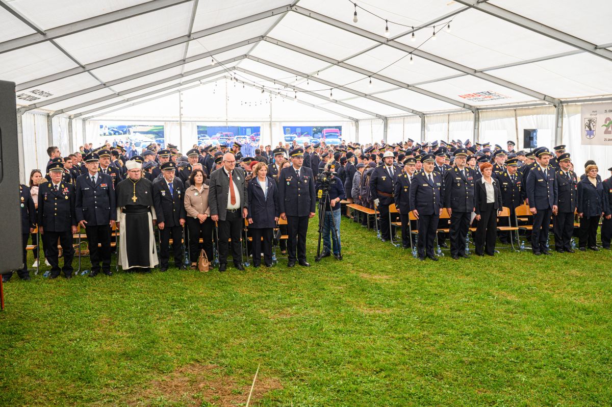 Zbrane so nagovorili tudi župan pobratene občine Hirschaid Klaus Homann, podpredsednik Gasilske zveze Slovenije Franc Bradeško ter župan občine Ivančna Gorica Dušan Strnad, ki je vodstvu gasilske zveze ob visokem jubileju izročil spominski kovanec Prijetno domače.
