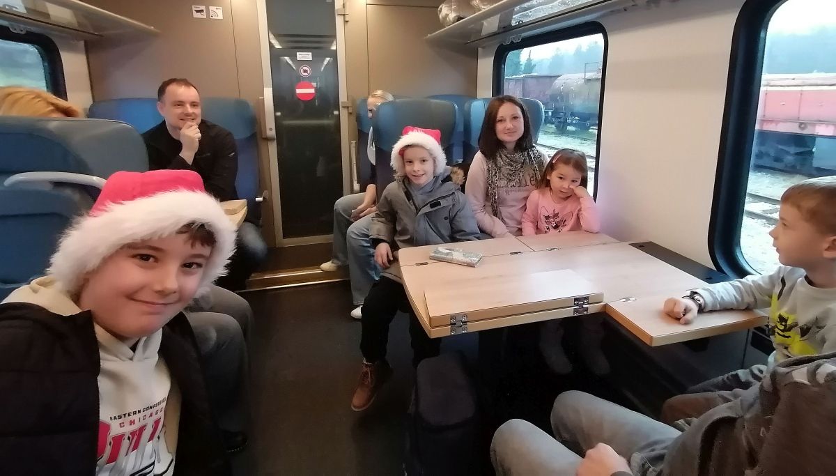 Na vlak je na železniški postaji v Bršljinu vstopila tudi družina Sintič iz Škocjana. Mamica je povedala, da sta se njihova 5-letna Eva in 3-letni Jakob zelo veselila vožnje z Božičkovim vlakom, Jakob je bil celo prvič.