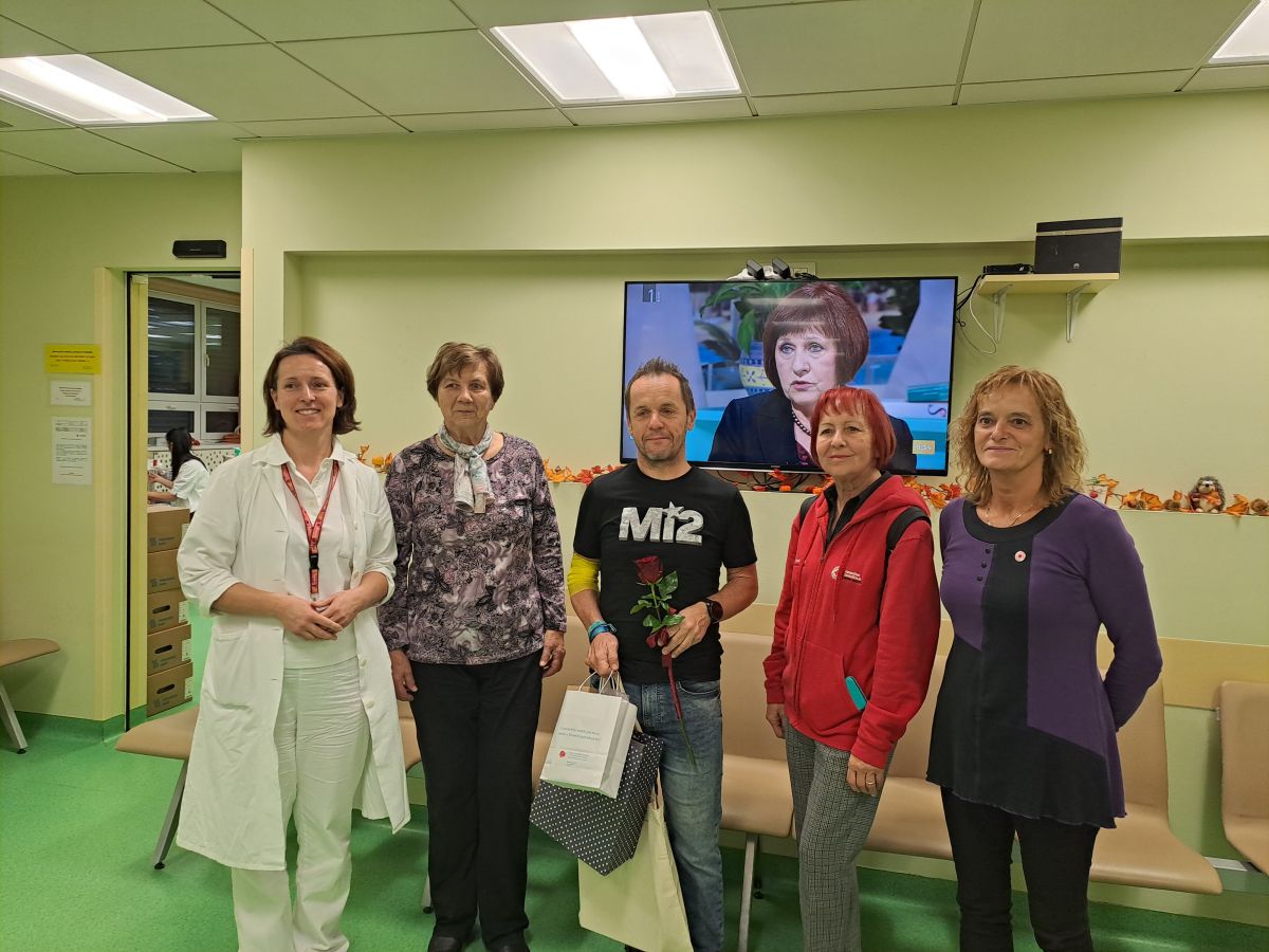 Na Centru za transfuzijsko dejavnost Novo mesto so pričakali in čestitali Eriku Kraševcu iz Krajevne organizacije Rdečega križa Majde Šilc, ki je kri daroval že 110-ič. Z darovanjem krvi je začel pri svojih 25-ih letih in od takrat prihaja redno na odvzem krvi vsake tri mesece.