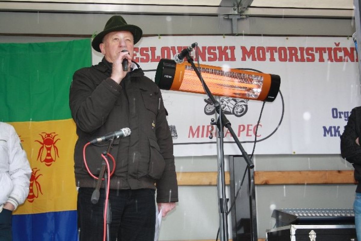 "Naj se nam motoristom nikakor ne mudi v onstranstvo," je ob današnjem blagoslovu motorjev in motoristov v Mirni Peči izpostavil predsednik Zveze moto klubov Slovenije Leopold Pungerčar. Zaradi snega in izredno hladnega vremena je bilo na 15. blagoslovu videti nekaj manj motorjev in ljudi, a kljub temu je bilo vzdušje prijateljsko, sproščeno, kakor se za tak dogodek spodobi. Med najbolj zagnanimi motoristi, ki so se danes na Dolenjsko pripeljali na dveh kolesih, je bil tudi Janez Šimenc, nekdanji mirnopeški župnik, ki je v sodelovanju z Moto klubom Trebnje začel z motorističnimi blagoslovi v tem kraju, zdaj pa je župnik v Domžalah.