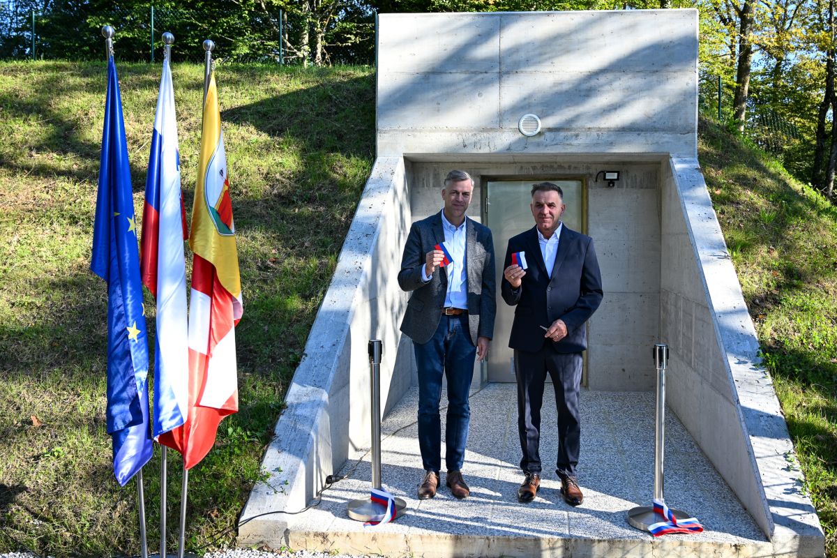 Novomeški župan Gregor Macedoni in predsednik tamkajšnje krajevne skupnosti Bojan Florjančič sta popoldne namenu predala prenovljeno komunalno infrastrukturo z novozgrajenim vodohranom in cesto.
