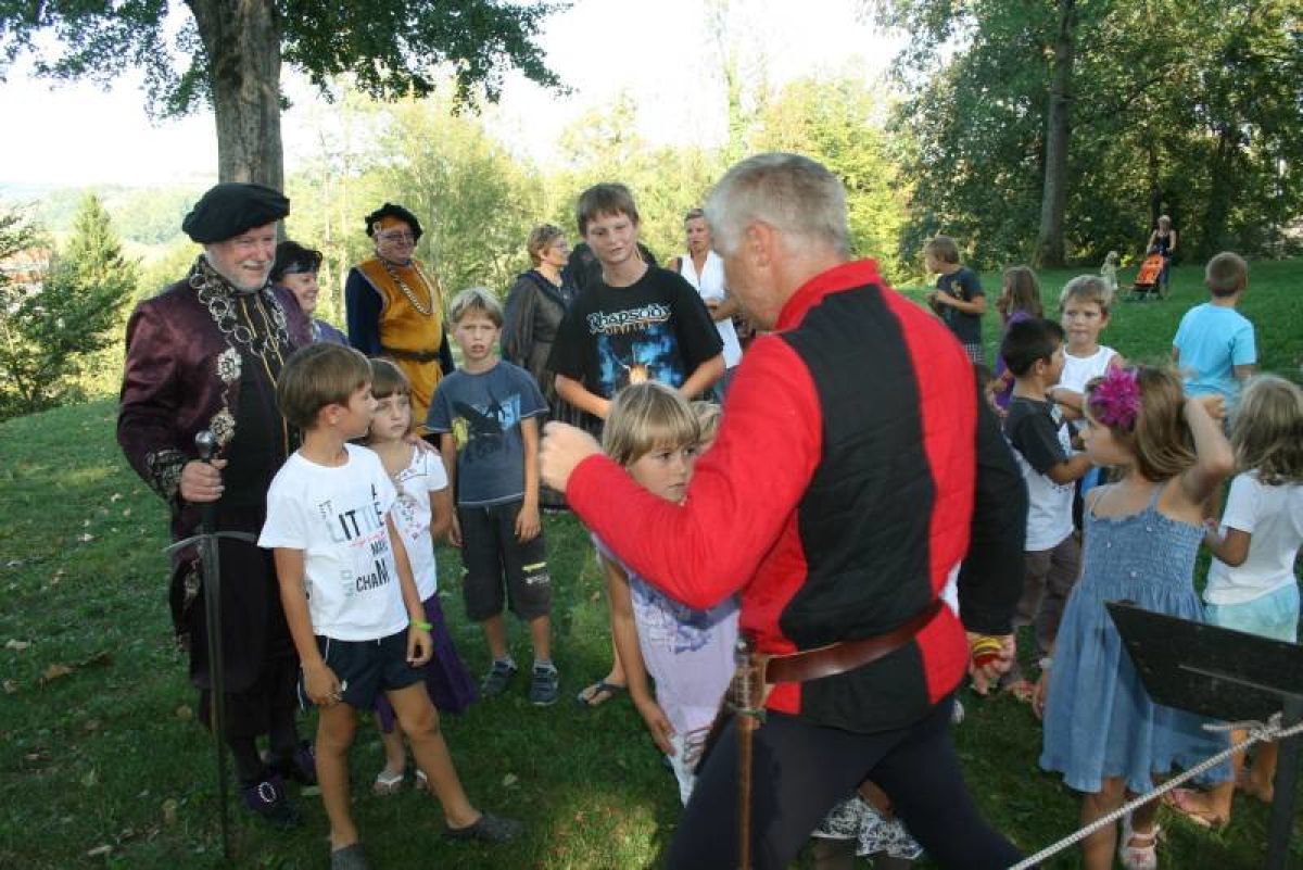 Ko je popoldne prišel v grajski park baron Moscon z drugo grajsko gospodo, je ob pogledu na maloštevilne obiskovalce dejal, da bo razmislil, ali ne bi kazalo, da bi prihodnje leto vsakemu obiskovalci plačal 15 evrov za obisk tržnice. Na račun so prišli vsaj otroci, ki so radi pomerili tudi viteško opravo: zaradi tega, ker po besedah Roka Petančiča ni bilo prijav, ni bilo niti napovedanega srednjeveškega nogometa v parku.