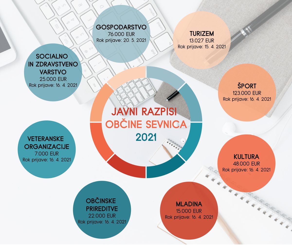 Objavljeni so javni razpisi s področij gospodarstva, turizma, športa, kulture, mladine ter socialnega in zdravstvenega varstva, sporočajo iz sevniške občine. Objavljena sta tudi javna poziva za sofinanciranje dejavnosti in programov veteranskih organizacij ter za izbor izvajalcev s področja godbeništva za organizacijo, izvedbo in sodelovanje pri prireditvah širšega občinskega pomena.