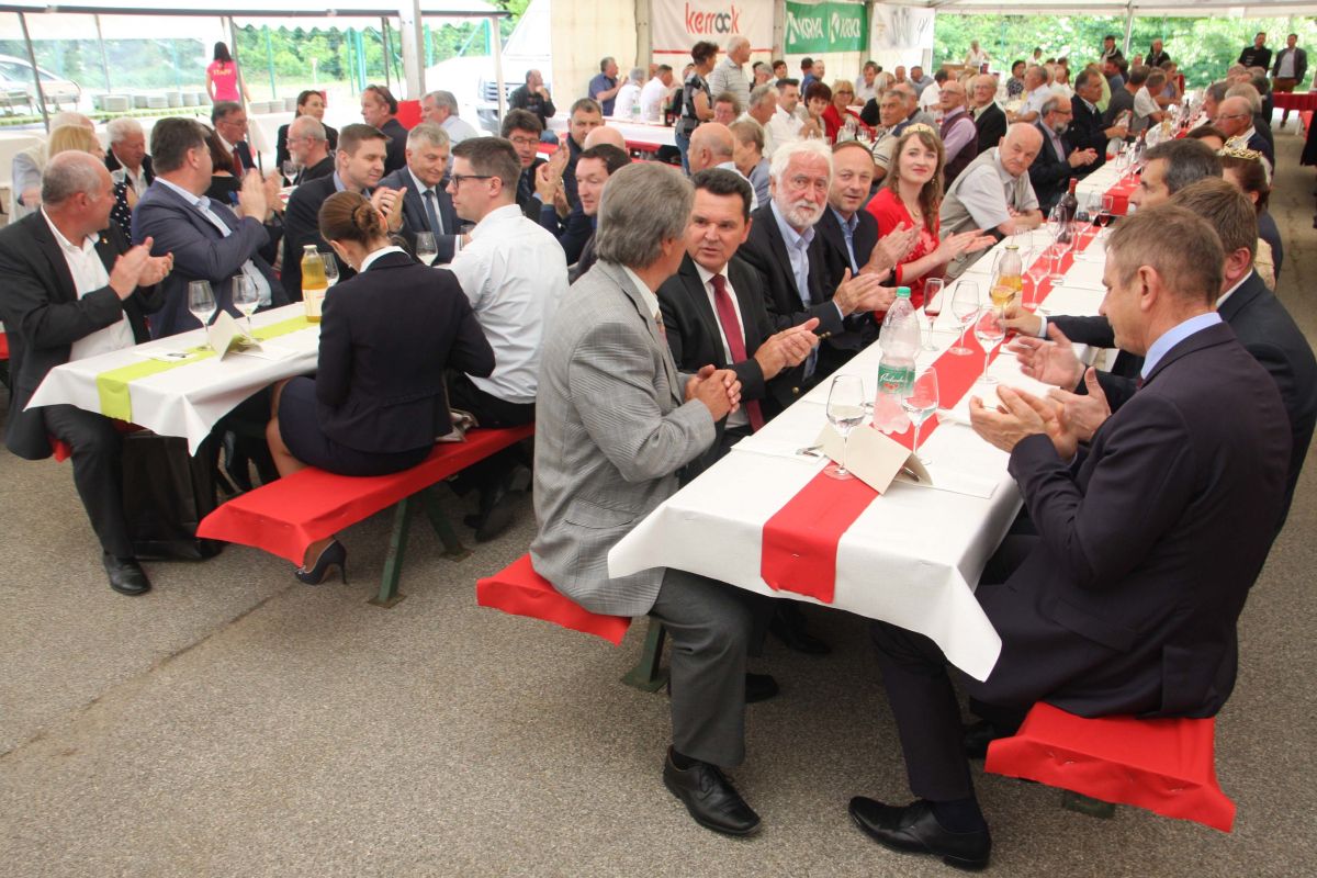 Zbrane so na včerajšnji slovesnosti nagovorili še krški župan Miran Stanko, ki je izpostavil tudi promocijsko in vzgojno funkcijo zadruge, predsednik zadružne zveze Peter Vrisk, ki je podprl zahtevo po ureditvi vinskega trga, cvičkova princesa Dragica Ribič in vinska kraljica Katarina Pungračič, evropski poslanec Franc Bogovič, predsednik zveze društev vinogradnikov Dolenjske Miran Jurak in še kdo, med njimi tudi najstarejši član KZ Krško, 91-letni Mihael Metelko, ki je zbranim sporočil: "Cvič'k pijte, pa boste dočakali 100 let!"