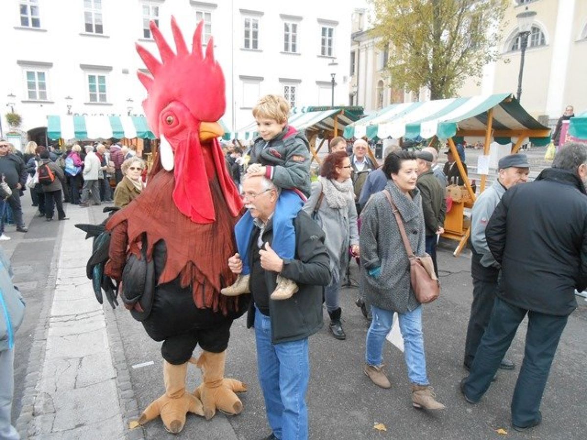 Dišalo je po šentjernejskih dobrotah s stojnice Društva kmetic Šentjernej, ki so pekle tudi v živo. Po tržnem prostoru se je tudi tokrat bahavo in veličastno šopiril šentjernejski petelin. Podjetje Herba Gallus zelišča je obiskovalcem ponudilo vroč Plečnikov čaj, ki ga je mogoče kupiti samo v lekarnah, Plečnikov brinjevec in grenčico. Lončarski atelje Polde se je predstavil in seveda ponudil v nakup veliko raznoraznih lončarskih izdelkov za uporabo v gospodinjstvu, pa seveda tudi precej okrasnih izdelkov iz gline, na čelu s Šentjernejskim petelinom. Čebelar Milan Kosmač je nudil odličen Šentjernejski med, Mesnine Kmetije Košak so vabile s stojnice s svojim izgledom in vonjem. Kartuzija Pleterje je imela v ponudbi odlično Pletersko hruško, ekološka jabolka, zeliščne grenčice, brinjevec, liker in vina. Z bogato ponudbo pa se je predstavila tudi Turistična Kmetija pr´Martinovih – Krhin. Predvsem pa ni manjkalo odličnega cvička, ki ga je na stojnici točil sam Šentjernejski kralj cvička Denis Gorenc z družino. Za dobro razpoloženje je poskrbel vedno nasmejani harmonikar Slavko Frančič. Zapeli pa so tudi Fantje z vasi.