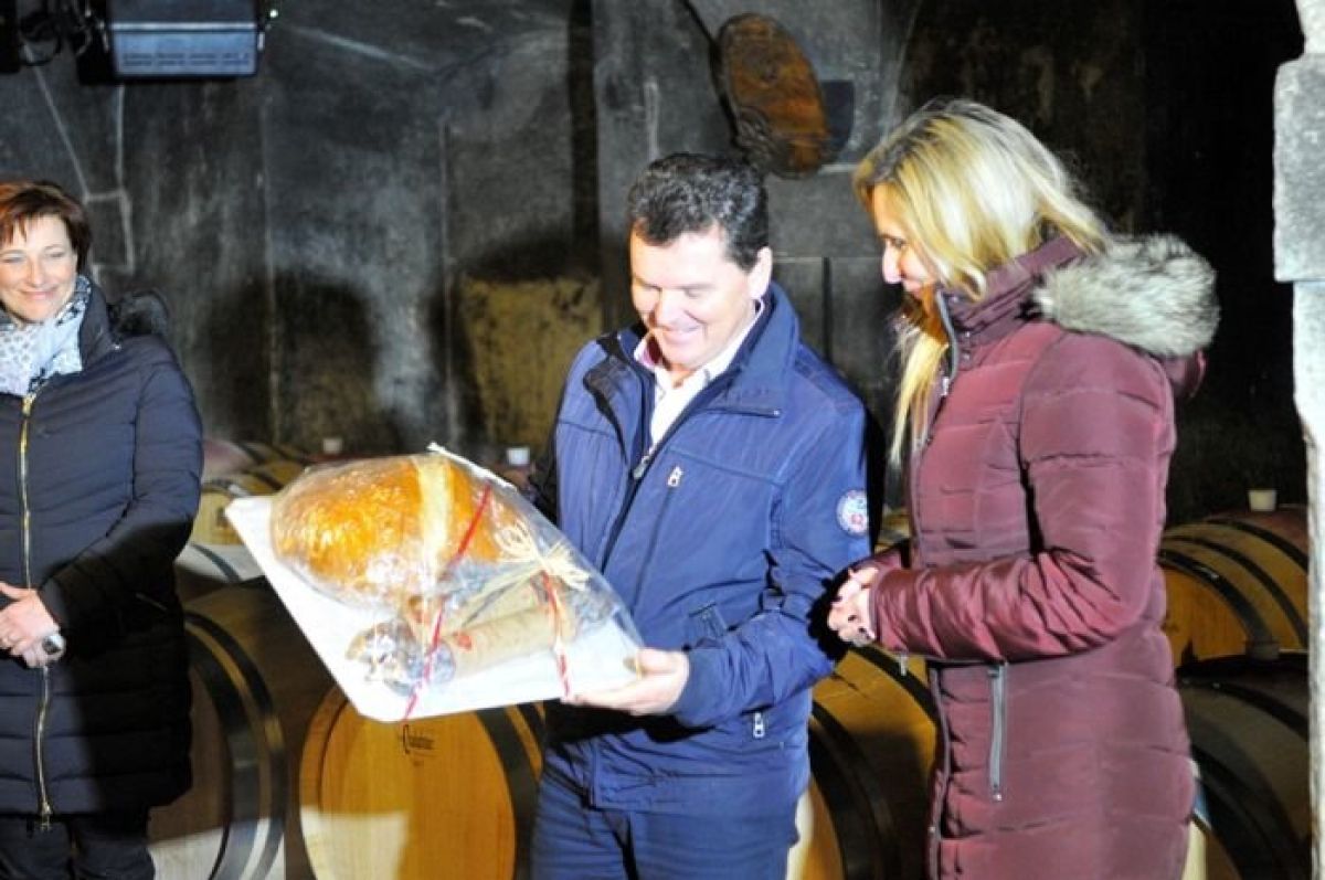 Kot vsako leto so v zimskem času predstavniki KŠTM Sevnica skupaj s Sevniškimi graščaki na čelu z baronom Mosconom, nekdanjimi prvaki in ostalimi partnerji pri projektu Modra frankinja obiskali prvaka zadnjega festivala modre frankinje.