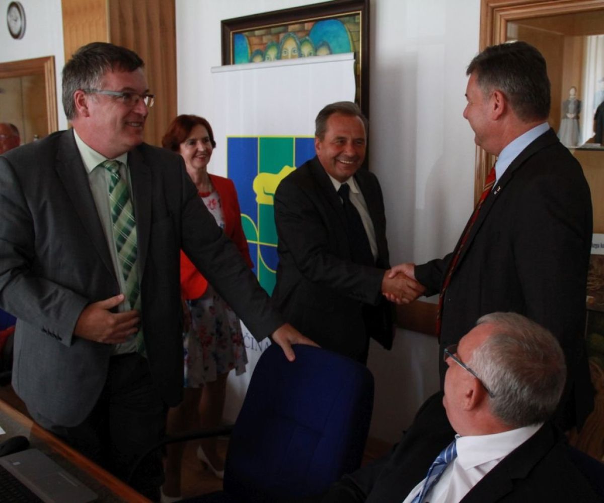 Minister za infrastrukturo Peter Gašperšič si je danes s svojo ekipo ogledal, kako poteka obnova viadukta Ponikve, pred tem pa se je v sejni sobi občine Trebnje sestal z županom Alojzijem Kastelicem, s katerim se je pogovarjal o infrastrukturnih naložbah v občini.
