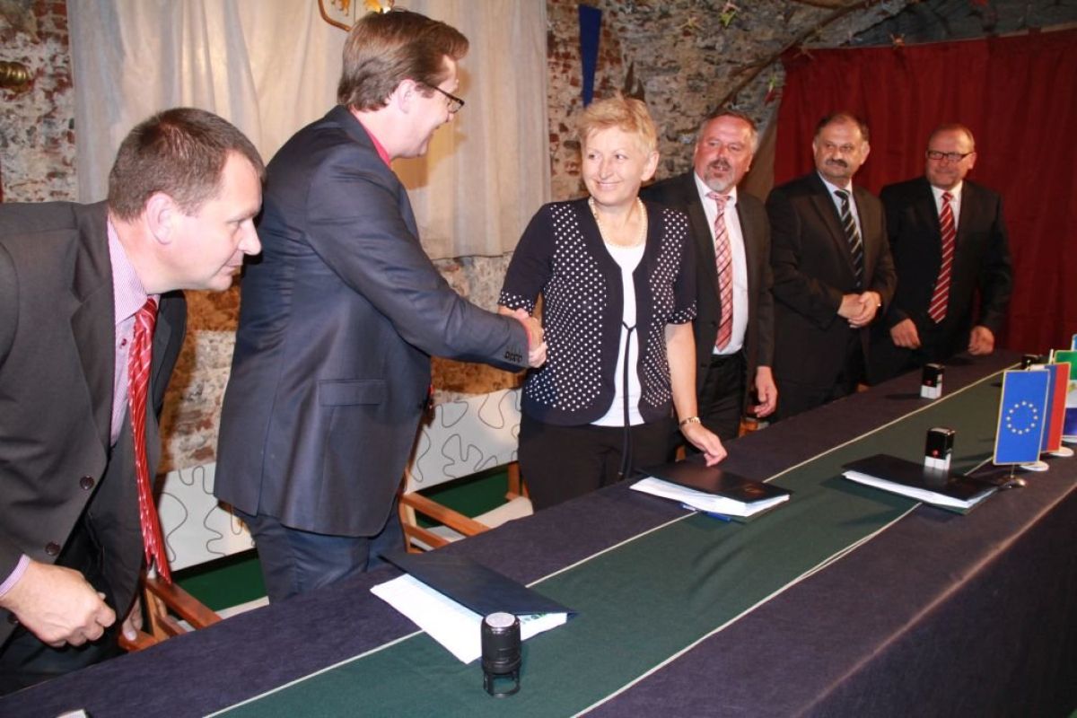 Župani Občin Žužemberk, Mirna Peč, Dolenjske Toplice, Kočevje in Dobrepolje so z ministrico za okolje in prostor Ireno Majcen danes ob poldne v grajski kleti žužemberškega gradu vendarle podpisali pogodbo o sofinanciranju tako imenovanega projekta Suhokranjski vodovod, ki predvideva naložbo v skupnem znesku dobrih 36 milijonov evrov.