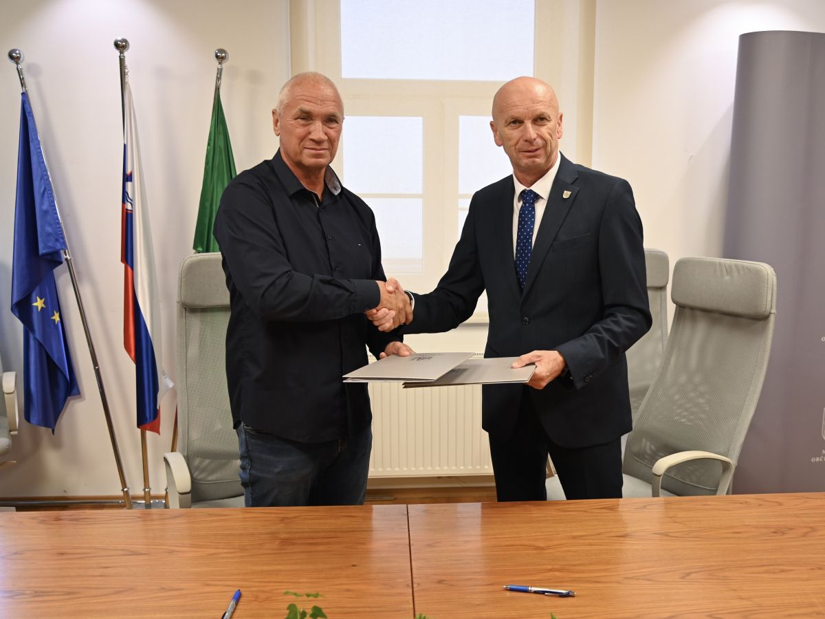 Podpisnika sta župan Mestne občine Krško Janez Kerin in predstavnik izvajalca del Armando Istenič.