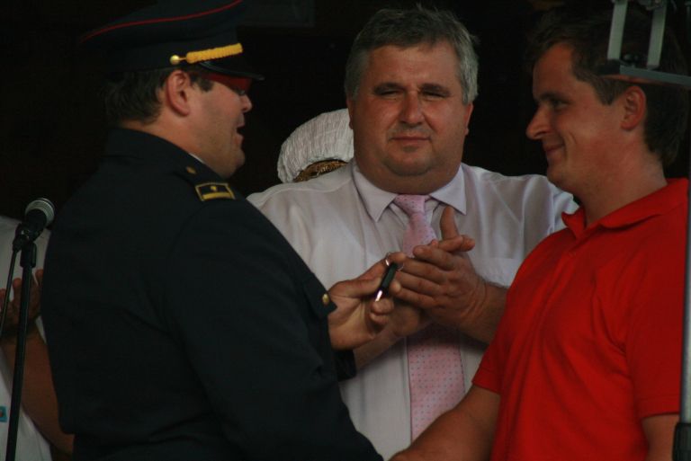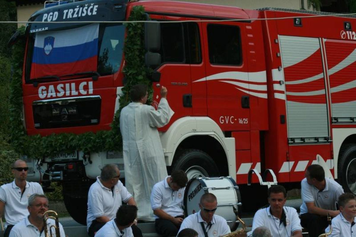Ključe avtocisterne je poveljniku PGD Tržišče Tomažu Suhodolčanu predal podpredsednik Gasilske zveze Sevnica, Vinko Knez, ki je izročil predsedniku PGD Tržišče Janezu Pungerčarju, verjetno najbolj zaslužnemu za pridobitev, gasilsko odlikovanje druge stopnje, s katerim je Gasilska zveza Slovenije odlikovala ob jubileju PGD Tržišče. Tržiškim gasilcem sta čestitala ob jubileju in zelo pomembni pridobitvi tudi sevniški župan Srečko Ocvirk in predsednik KS Tržišče Janez Kukec. Potem, ko je tržiški župnik Slavko Kimovec blagoslovil vozilo, so šofer Marko Pungerčar, ki je dobil ključe novega vozila iz rok poveljnika Suhodolčana, in še nekateri njegovi tovariši, številnim zbranim gasilcem, tudi iz drugih društev, ki so v povorki prišli na prizorišče, in drugim gostom na kratko demonstriral uporabnost vozila.