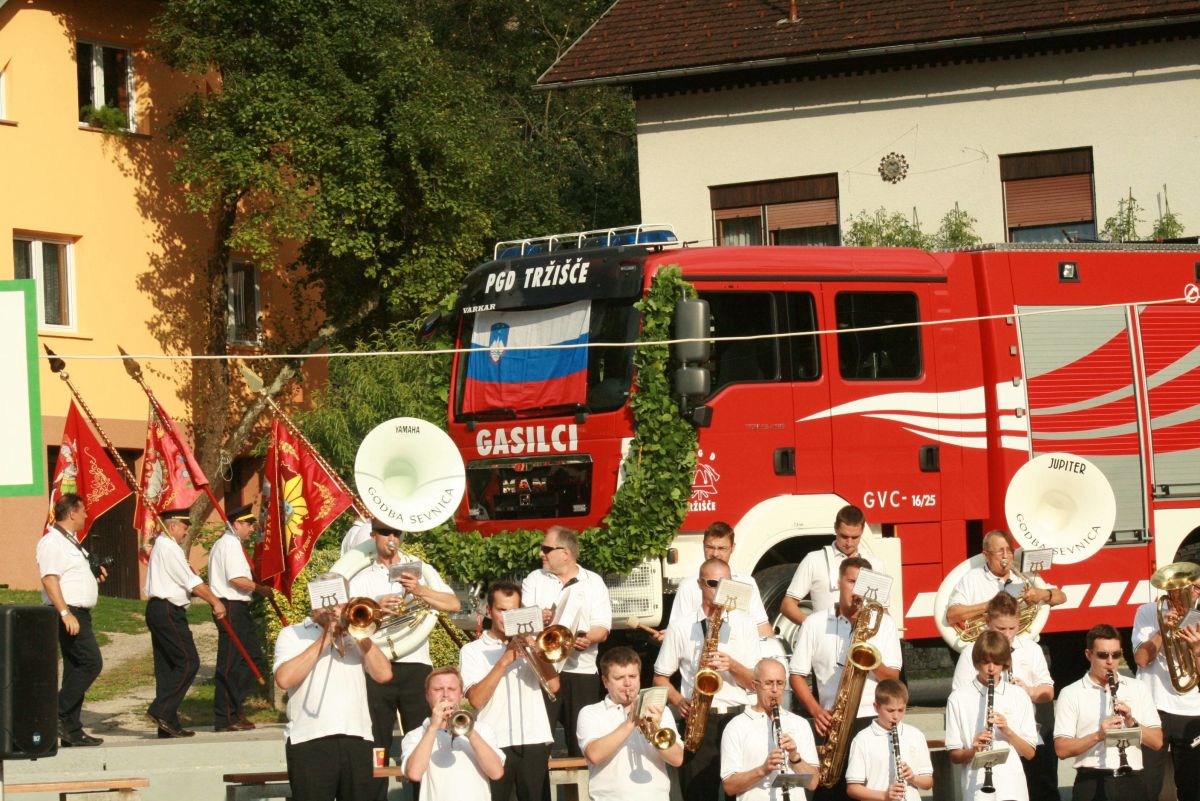 K slavnostnemu razpoloženju v tržiškem športnem parku je včeraj popoldne prispevalo tudi muziciranje sevniške godbe pod taktirko Nejca Matica Kreče, najpomembnejši dogodek vsaj zadnjega desetletja v kroniki PGD Tržišče, če že ne v celotni zgodovini društva, pa je prijetno zaokrožilo še petje Moškega pevskega zbora Emil Adamič iz Mokronoga, pod vodstvom Staneta Pečka.