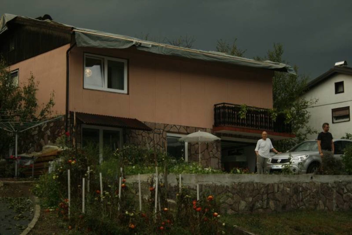 "Ko je toča uničila streho, je voda zalila naše bivalne prostore, postelje, zato smo poklicali na pomoč sevniške gasilce. Zelo hitro so se odzvali in prekrili okrog 110 m2 strehe s folijo, da bi preprečili nadaljnje zamakanje hiše. Ta salonitka je bila že druga kritina na naši, okrog 40 let stari hiši. Skoraj zanesljivo se bomo zdaj odločili za nabavo močnejše, pločevinaste kritine, da bomo varni pred točo in podobnimi ujmami," je povedal Franc Požun še ves pretresen, potem ko so se sevniški gasilci, med katerimi je bil tudi poveljnik Gasilske zveze Sevnica Gašper Janežič, že poslavljali.