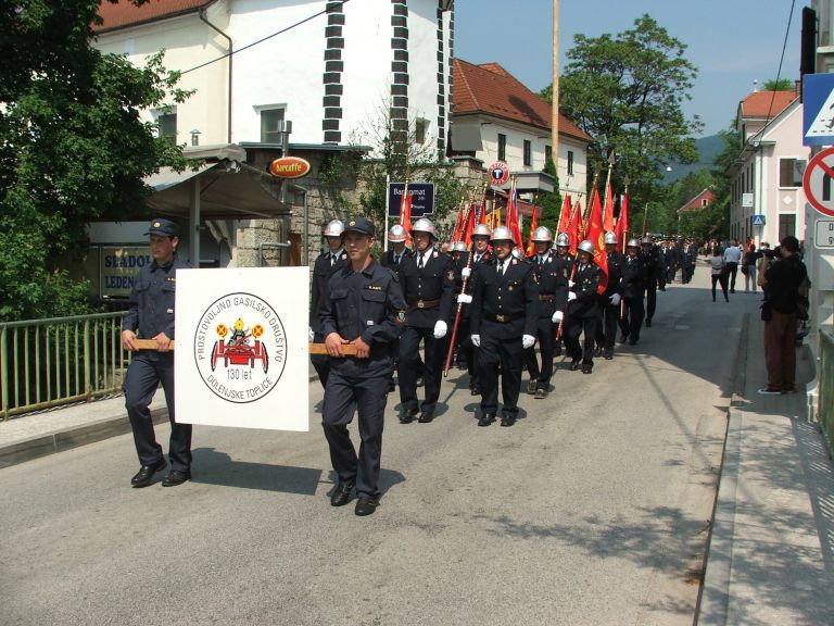 Člani in članice Prostovoljnega gasilskega društva Dolenjske Toplice so včeraj dopoldne slovesno obeležili visok jubilej, 130-letnico društva. Parado, ki je potekala skozi Dolenjske Toplice in v kateri je poleg domačega sodelovalo še 16 prostovoljnih gasilskih društev (tudi iz pobratene hrvaške občine Tuhelj), pa tudi poklicni gasilci in 22 gasilskih avtomobilov, si je ogledala tudi ministrica za obrambo Ljubica Jelušič.
