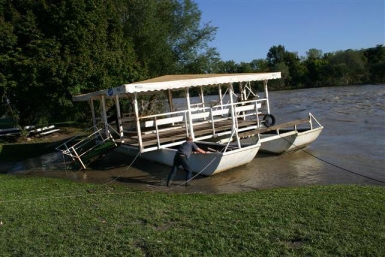 Mostec, v katerem so v nedeljo kmalu popoldne razglasili alarm pred verjetnimi poplavami, je včeraj popoldne živel že precej po starem. Sava se je že precej znižala. Brod so domačini postopoma spuščali v reko. Na nasipu so še bile vreče peska, ki so jih tja naložili v nedeljo, ko je nenavadno visoka Sava že pljuskala čez varovalni nasip. V deroči vrtinčasti rjavi Savi smo opazili tudi veslača, ki je očitno nadvse zadovoljen z razmerami v reki vozil s tokom, malo pred tem smo ga videli na Čatežu ob Savi na sotočju Krke in Save.