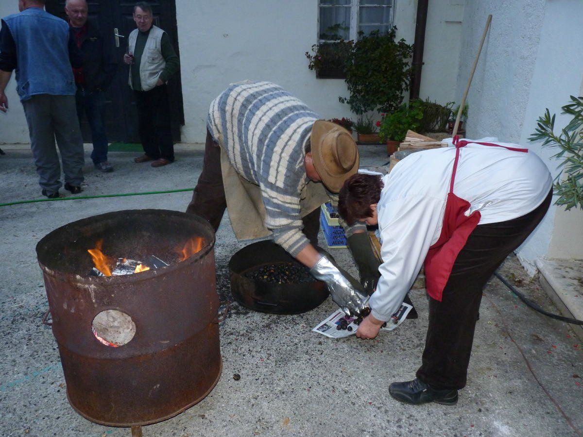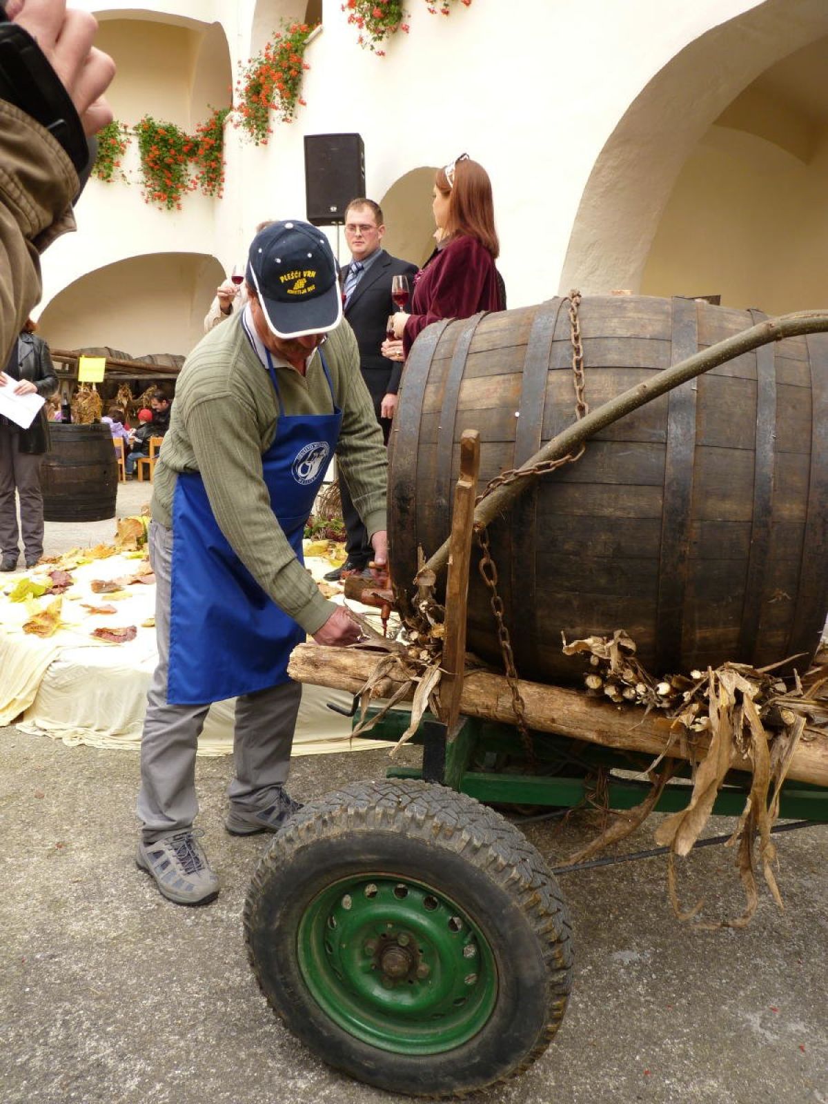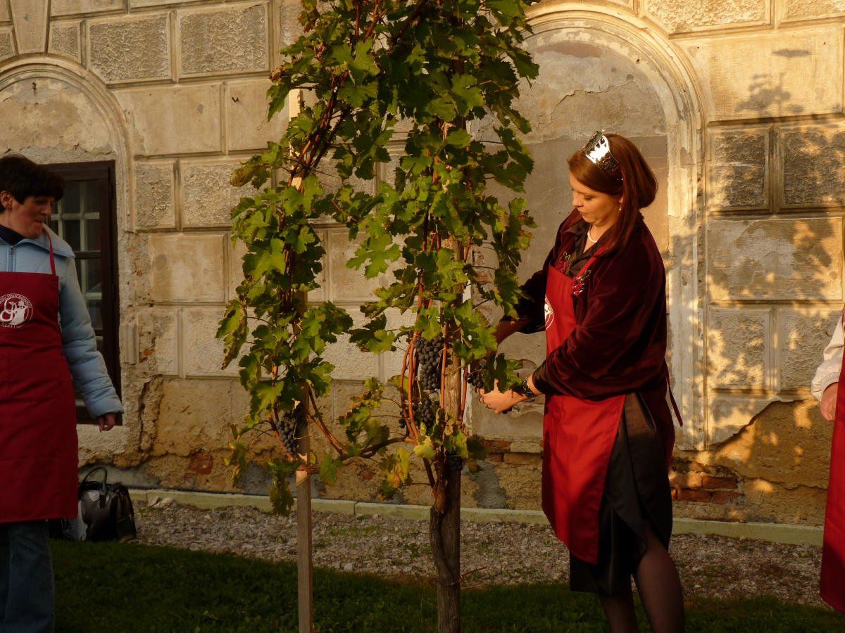 Ob 15.30 so s konjsko vprego pripeljali na grajsko dvorišče sod, v katerem je bila mlada portugalka osmih vinogradnikov. Natanko ob 16. uri sta enolog dr. Julij Nemanič in predsednik Društva vinogradnikov Metlika (DVM) Martin Pečarič zabila v sod pipo in začeli so točiti mlado portugalko. Ob tem je Pečarič izročil dr. Nemaniču tudi listino o častnem članstvu v DVM. Drugo leto zapored so pred številnim občinstvom po starih običajih potrgali potomko 400-letne modre kavčine z mariborskega Lenta. Tokrat je čast pripadla predsedniku DVM Pečariču, metliški županji in državni poslanki Renati Brunskole, kraljici metliške črnine Petri Žabčič, viničarki Mariji Škof, Božu Flajšmanu, Jožici Brodarič, Violeti Tomič, Zdenki Bajuk in Ani Gomolj.