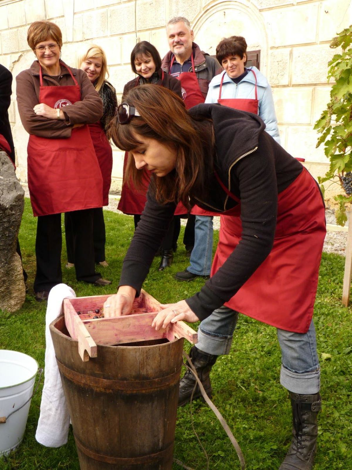 Žabčičeva je nato z nogami pretlačila grozdje, Andrej Bajuk pa je izmeril 78 OE. stopinj sladkorne stopnje. S tem se je tudi uradno zaključila letošnja redna trgatev. Iz mošta, ki so mu dodali kvasovke, bodo pridelali vino, ki ga bodo popili na grajskem dvorišču na Martinovo. Sledila je kmečka malica ter pokušanje mlade portugalke osmih vinogradnikov in iz skupnega soda ter prijetno druženje ob zvokih ansambla Trta. Obiskovalci, ki so dodobra napolnili grajsko dvorišče, so izbrali tudi najboljšo portugalko. Že drugič zapored je prehodni pokal prejel predsednik DVM Martin Pečarič, 10 litrov pa si je prislužil obiskovalec Andrej Dular iz Ljubljane.