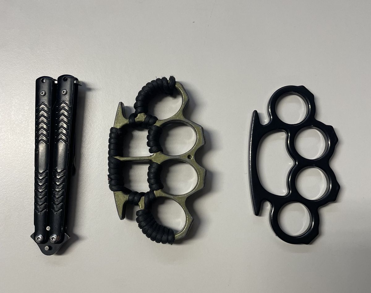 Pri varnostnih pregledih pa so pri udeležencih protesta našli in zasegli nekaj kosov hladnega orožja (mačeto, dva bokserja, preklopni nož, teleskopsko palico), pirotehnični izdelek in baklo.
