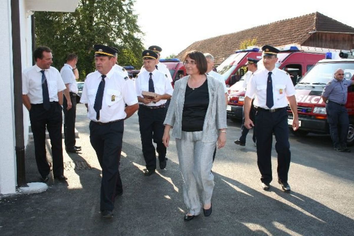 Ministrica si je z zanimanjem ogledala vsa vozila, ki jih premorejo gasilska društva. Mimogrede, glede na zahteve, ki jih postavlja država, financirati pa jih mora lokalna skupnost, so društva zelo podhranjena, tako z vozili kot z opremo. Cisterno, na primer, imajo le v PGD Šentjernej, Orehovica in Vrhpolje, osrednje gasilsko društvo, ki letos praznuje 130-letnico, pa ima 14 gasilskih oblek (po tipizaciji bi jih morali imeti 42). Jelušičeva je seveda prisluhnila težavam, ki tarejo gasilce.