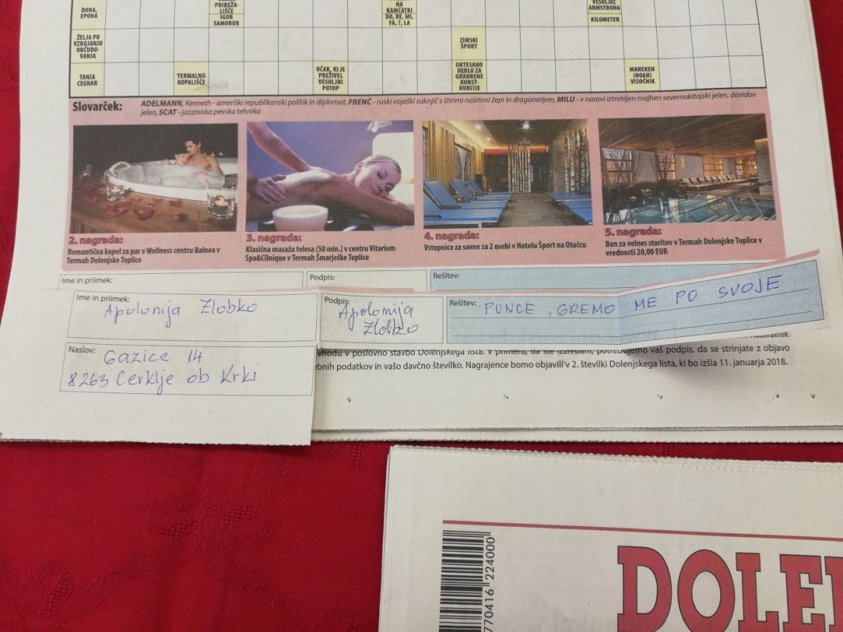 Novoletna križanka: Letos prva nagrada v Cerklje ob Krki