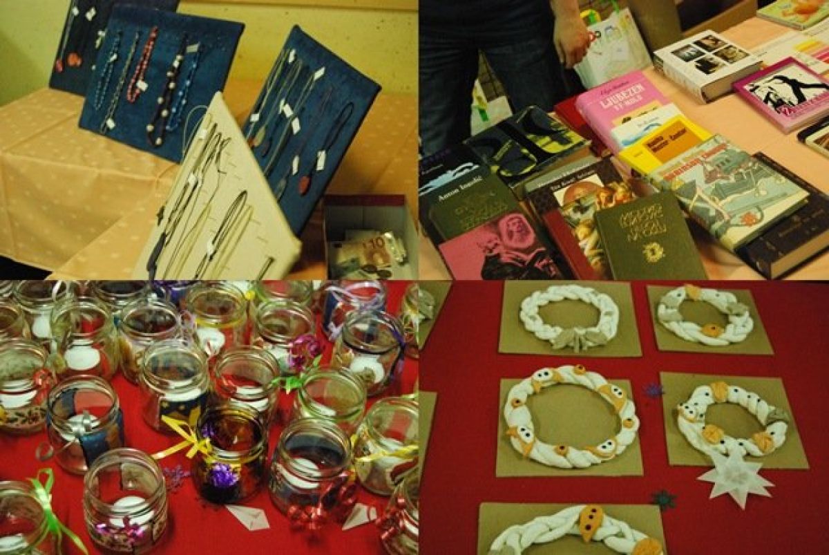 Imeli so 17 različnih stojnic, na katerih so ponujali najrazličnejše izdelke, narejene predvsem iz odpadnih in naravnih materialov: novoletne voščilnice, nakit, svečnike, darilno embalažo, novoletno dekoracijo, venčke, obeske za ključe, pecivo iz medenega testa, novoletno izdajo časopisa Prvi koraki. Imeli so tudi srečelov s 507 dobitki, bukvarno in izmenjavo knjig. Z udeležbo in izkupičkom so zadovoljni. Denar bodo namenili v šolski sklad za obogatitev šolskega programa.