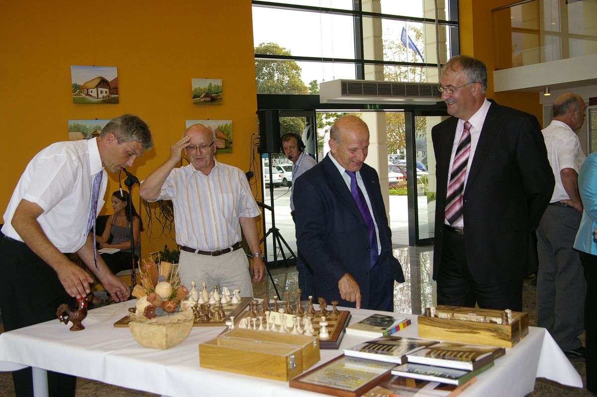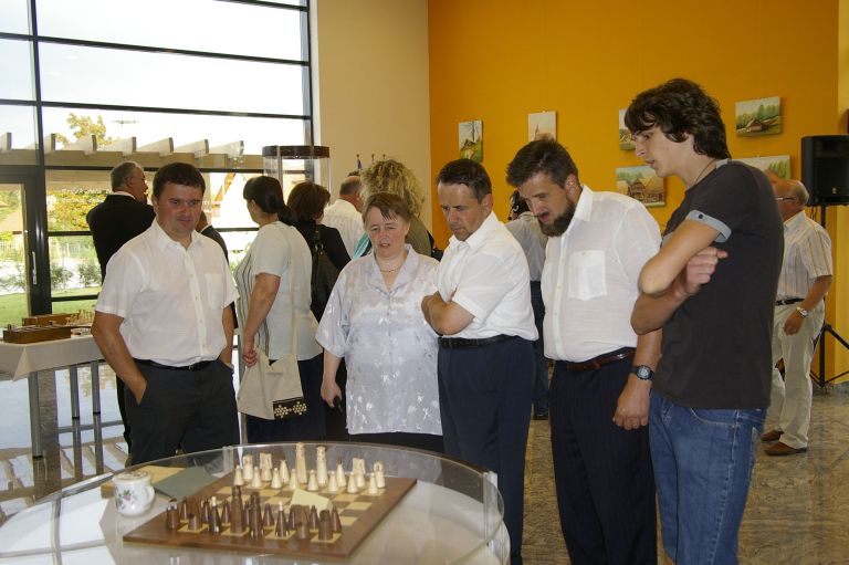 Pred slavnostno sejo so v avli kulturnega centra na pobudo društva Gallus Bartholomaeus odprli zanimivo razstavo štirih šahovskih garnitur, ki sta jih po zamisli arhitekta in oblikovalca prof. Janeza Suhadolca izdelala Janez in Gregor Novak iz podjetja Noj. Med njimi je tudi posebna šahovska garnitura Plečnik - Šentjernej, kjer je konj zamenjan s petelinom. Dve od sedmih garnitur že imata lastnika: občina Šentjernej in podjetnik Ivan Kralj iz Šentjerneja.